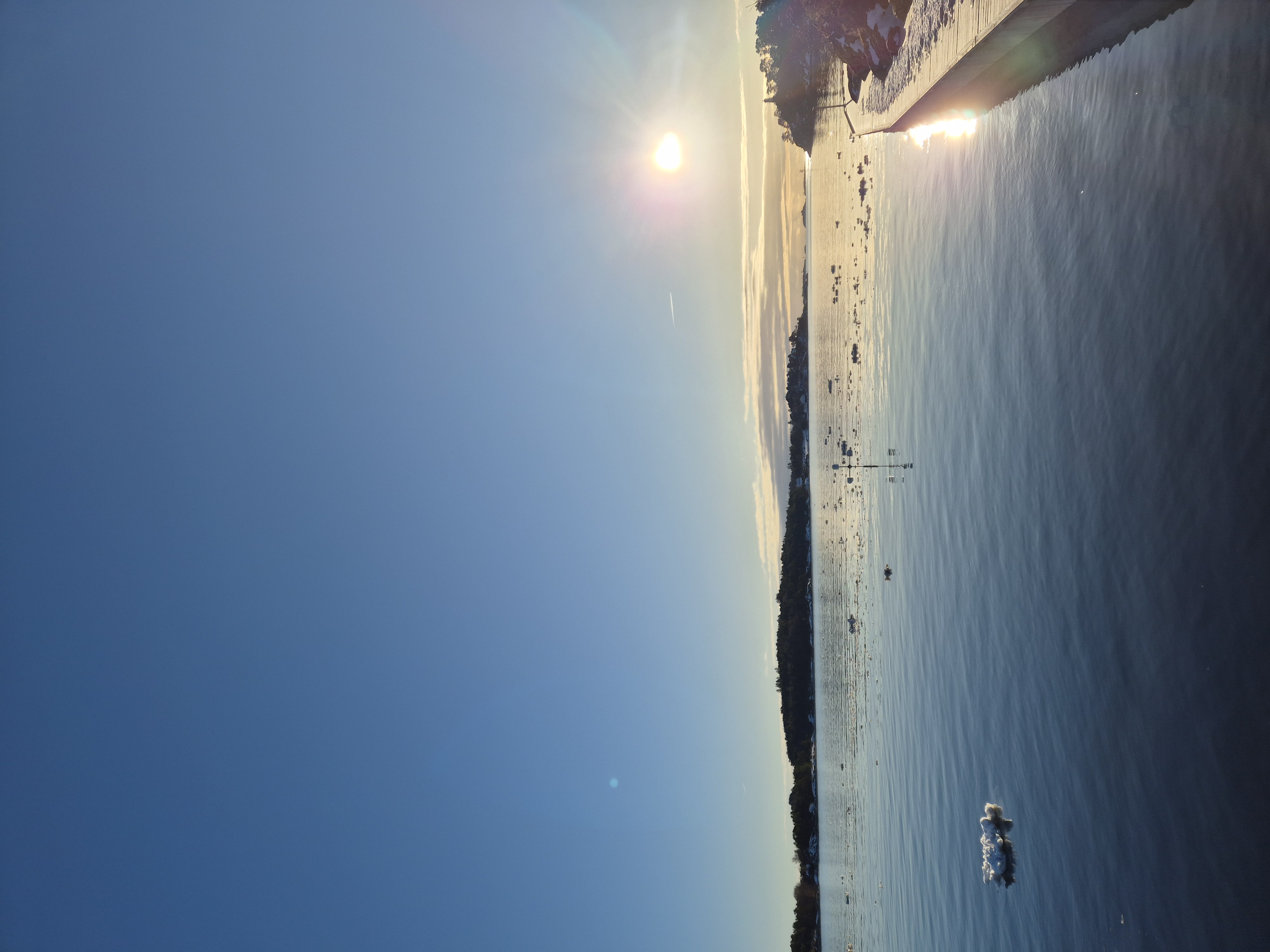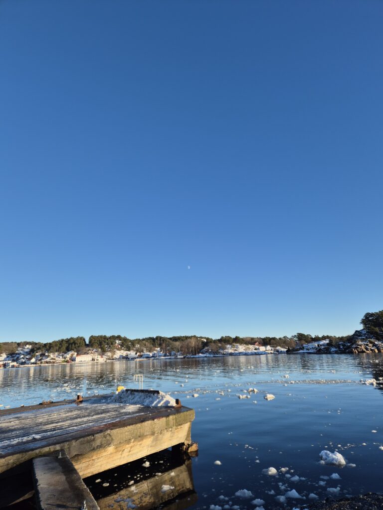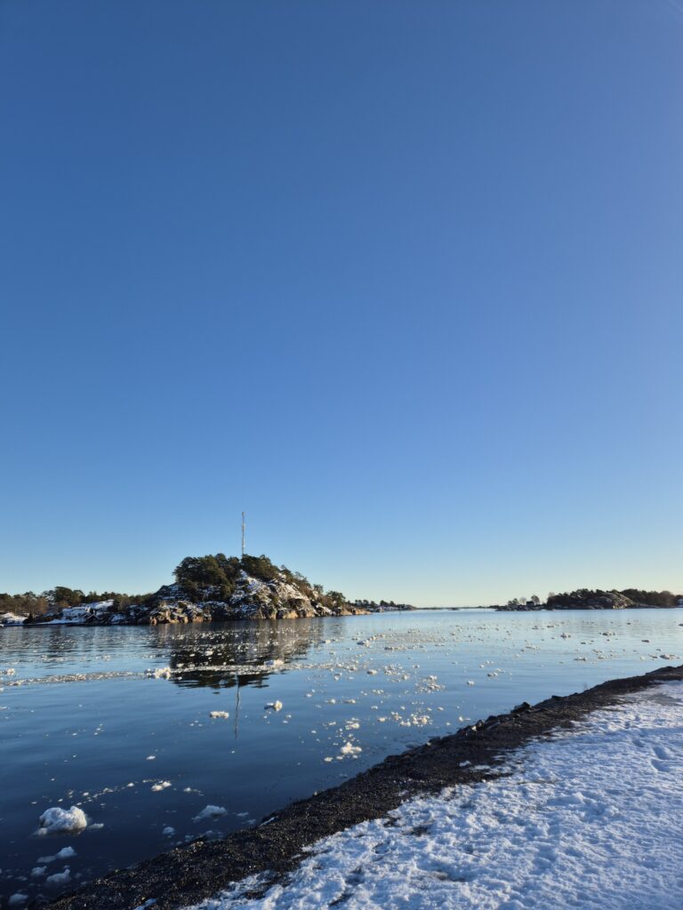 Wir machten uns auf den Weg in Richtung Stadtzentrum und Meer. Am Ziel angekommen, entdeckten wir überrascht, dass der überflüssige Schnee von den Straßen einfach ins Meer gekippt wird. Überall im klaren, blauen Wasser schwammen kleine Eisberge. Und es glitzerte malerisch im Sonnenschein.