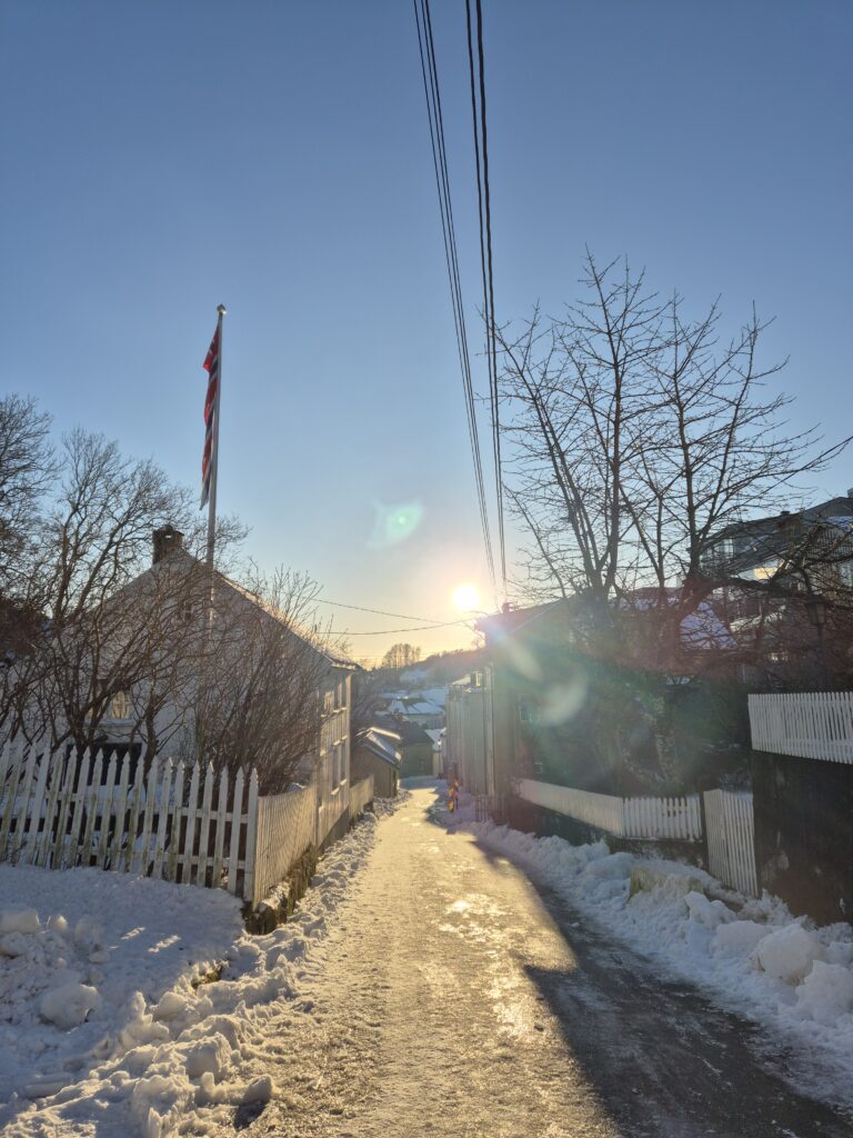 Wieder an der frischen Luft, verzauberten mich die hell gestrichenen Häuser und der funkelnde Schnee im Sonnenschein. Für diesen Anblick hatte es sich definitiv gelohnt, die ersten Tage durchzuhalten.