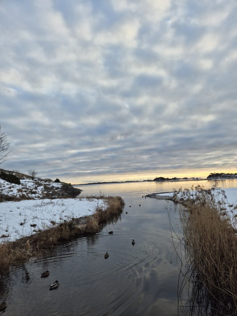 Auf der Campustour wurde uns ein Raum gezeigt, von dem man das Meer sehen konnte – so weit schien es also nicht zu sein. Ich wollte unbedingt dorthin und stapfte deswegen gut eingemummelt los.