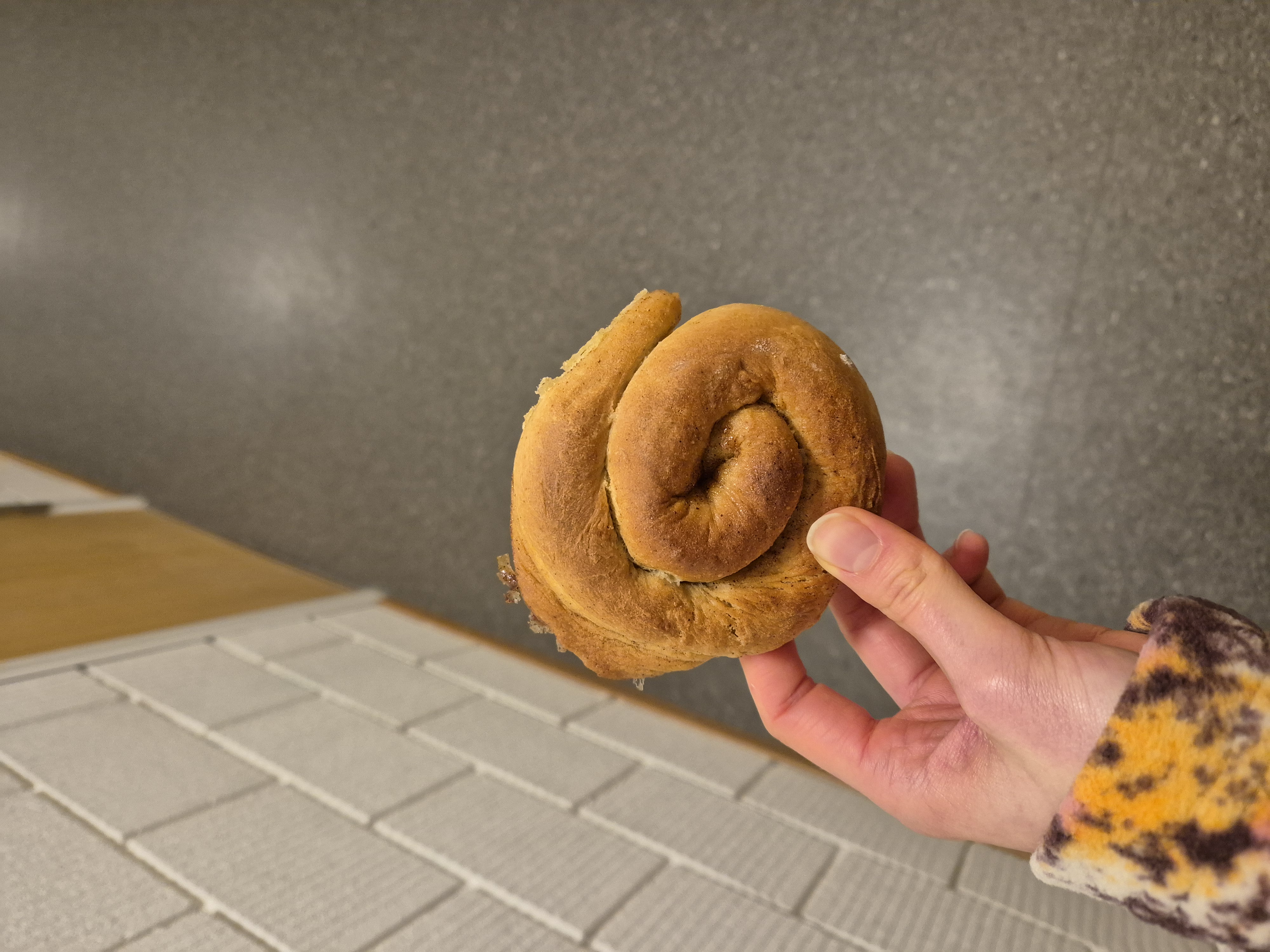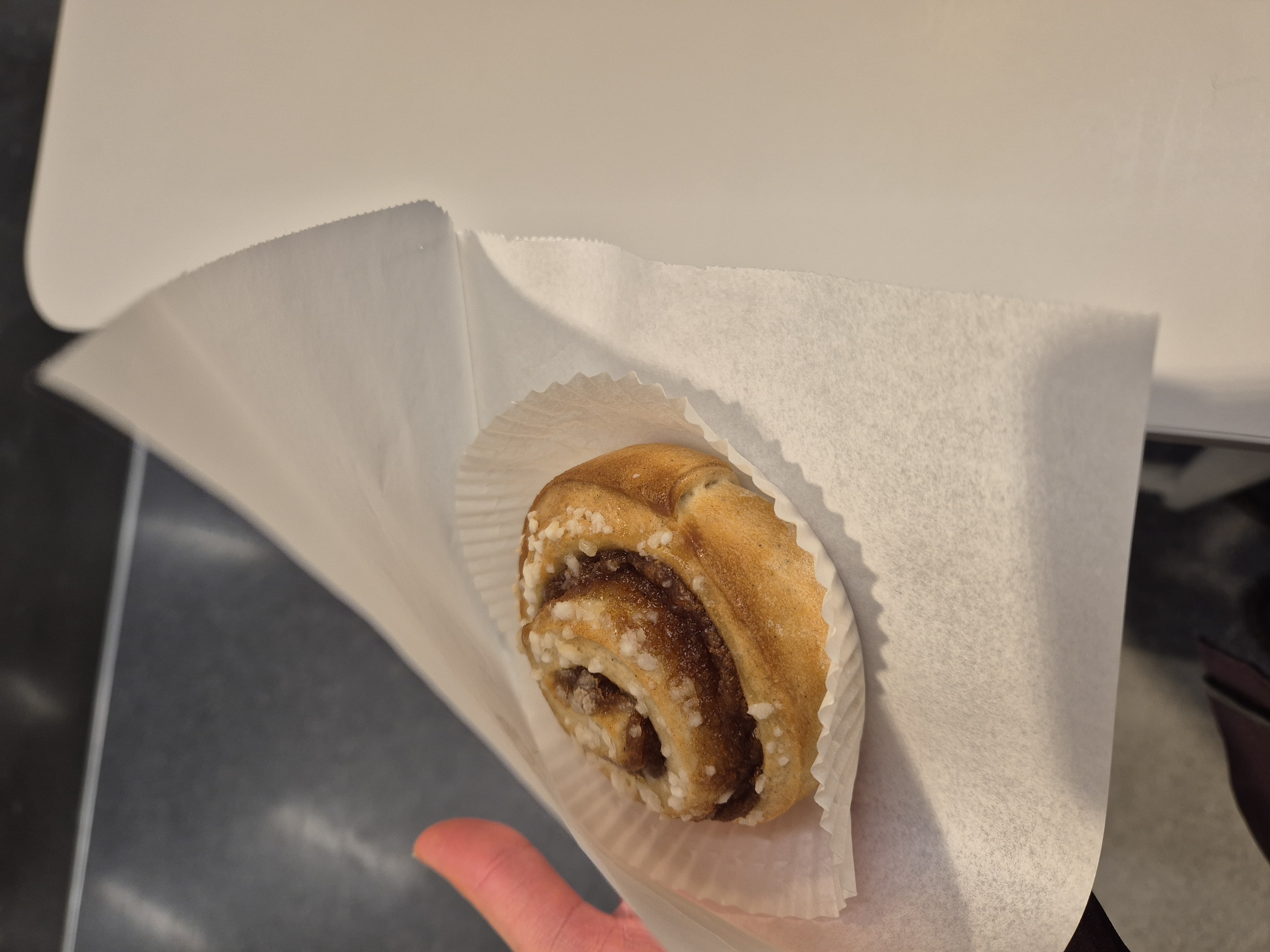 Abends trudelte dann das verlockende Angebot ein, eine frisch gebackene Zimtschnecke eine Etage unter mir abzuholen. Das ließ ich mir nicht zweimal sagen – und sie war noch richtig schön warm!