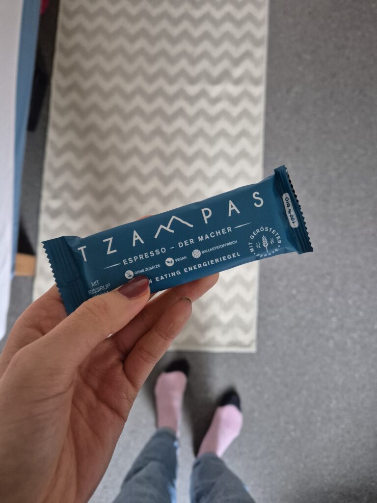 Eine weitere gute Alternative zum Kaffee war der Espressoriegel aus meinem Adventskalender. Da er auch vor oder während des Laufens verwendet werden kann, diente er mir an einem besonders trüben und grauen Tag als Laufmotivation – und er war wirklich richtig lecker! Außerdem konnte ich meinen Lauf dadurch noch vor dem Mittagessen und dem einsetzenden Regen absolvieren – und die Nachkommastelle meiner Laufkilometer war eine 42;) .
