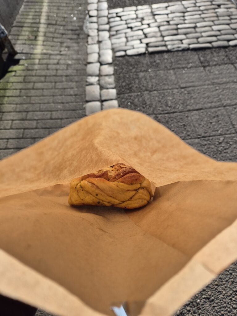 Eine weitere Erkenntnis: Die Kardamomschnecke eignet sich hervorragend als Pre-Run-Snack – deutlich besser als die Riegel, die ich mir neulich extra für diesen Zweck gekauft hatte. Vielleicht lag es aber auch daran, dass meine Nussmusmenge etwas zu großzügig bei den Riegeln war.
