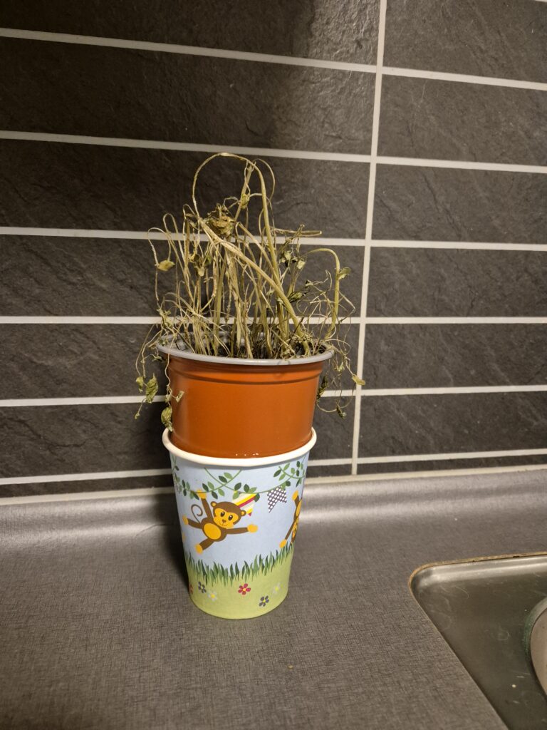 In unsere Küche ist auch ein Basilikum eingezogen, denn ein paar Erasmus-Studierende sind nach Tromsø gefahren. Die Pflanze macht allerdings keinen besonders lebendigen Eindruck mehr, aber ihre Besitzerin ist überzeugt, dass nur ein wenig Zuneigung notwendig sei.